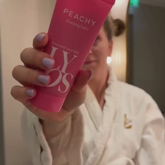LYOS Peachy Cleansing Balm is your go-to skincare treat for effortlessly removing makeup, SPF, and impurities. Step into a sparkling mimosa moment with its delightful peachy scent and luxurious texture that leaves your skin as soft and radiant as a peach—no tightness, just pure glow-getter goodness.